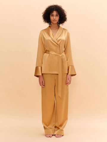 The silk set is made from 100% mulberry silk. This design uses a slightly heavier fabric weight to give the wearer a sense of grounding and perfect for meditation and lounge wear.