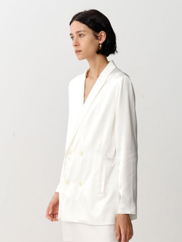 Silkinc gentle collared silk suit jacket with beautiful swan goose embroidery