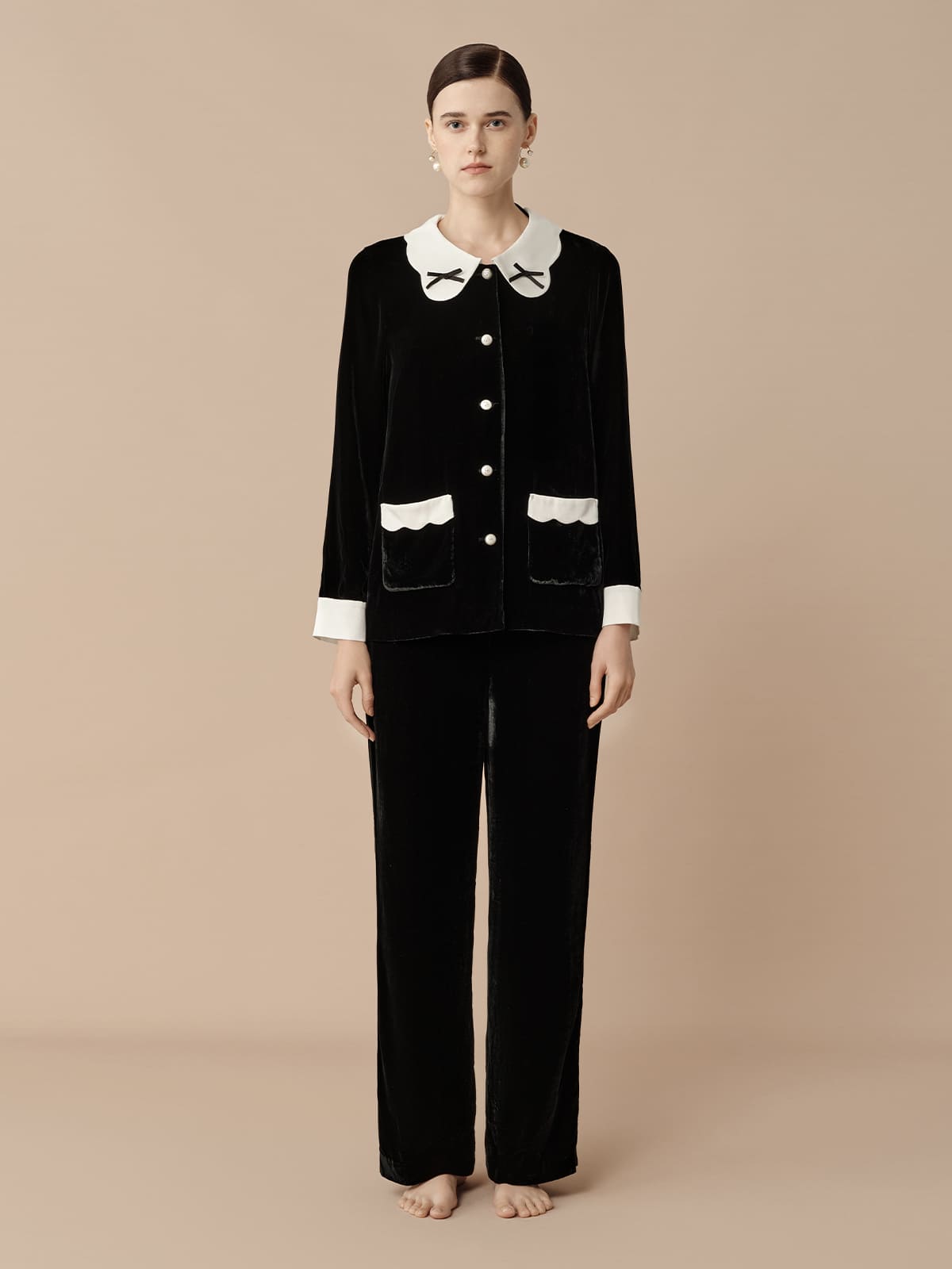 Step into oriental aesthetic style with Silkinc's CNY Series Auspicious Loungewear Co-ord. Featuring a hand-painted positioning print and a contemporary patchwork design, these trousers blend comfort and flair, making them perfect for homewear or occasions. The exquisite Dunhuang-inspired patterns bring a festive spirit and the unique connection at the pant legs adds a playful twist to the classic pleated silhouette, ensuring you stand out with effortless elegance. Embrace the richness of silk, known for its skin-nourishing benefits, and enjoy a look that seamlessly transitions from casual to chic.