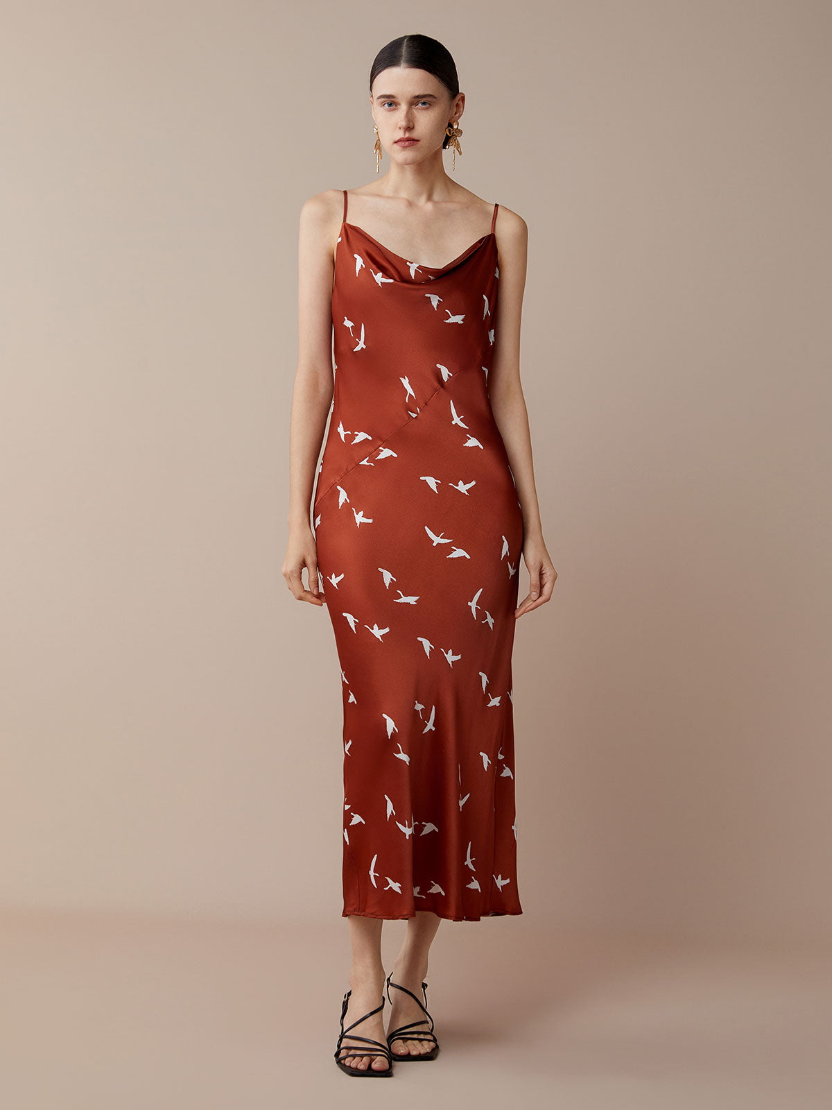 This Chinese style backless cheongsam is crafted from mulberry silk and polyester fiber. An iconic dress style which started in the Qing Dynasty 300+ years ago and became popular when this unique silk dress was made more form fitting in 1920s Shanghai for women. After 100 years, this fashion hasn’t gone out of style, but has continued to grow within China and abroad. It is a symbol of feminity, softness and beauty and worn with pride.This original cheongsam style elegantly highlights the waist, offering a timeless silhouette that exudes sophistication. The ruched and adjustable backless design allows you to decide what will work best for your occasion and the captivating swan goose print adds a touch of modern flair to this classic piece.