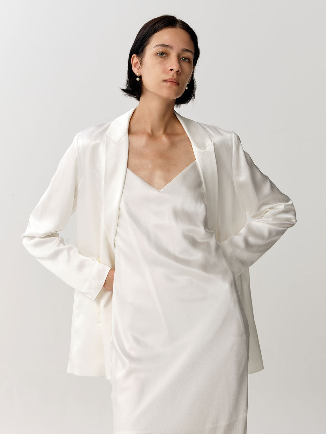 The Sunsafe UPF Protection Coastal Shorts draw inspiration from China’s grand mountain and sea landscapes and the French Riviera’s laid-back romance, fusing Eastern depth with Mediterranean relaxation. Crafted from 16 momme jade silk satin (63% nylon, 37% mulberry silk), it boasts a skin-nourishing, antioxidant texture with a built-in sun-protective layer—ultra-thin, yet completely opaque. The vibrant coastal stripe pattern is paired with a loose athletic fit that prioritizes comfort. It seamlessly blends sun protection functionality with vacation elegance for effortless outdoor resort wear.